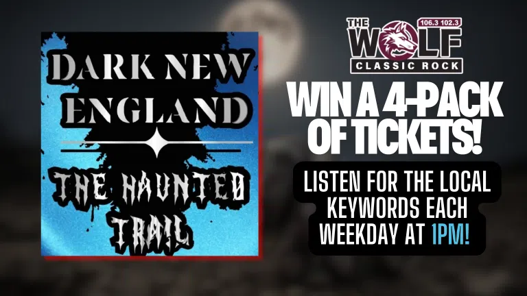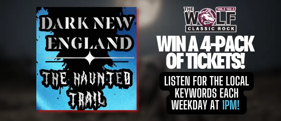 The Wolf has your chance to win a 4-pack of tickets to Dark New England Haunted Trail in East Providence- where nightmares come alive! Listen to Heather Gersten from Mon, 9/29 thru Fri, 10/3 in the 1pm hour for the local text keyword to TEXT IN to 401-272-5483 for your chance to WIN a 4-pack of tickets!