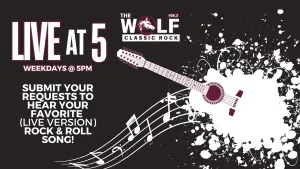 Every weekday at 5pm, tune in to Will Gilbert as he plays "Live in Concert" versions of your favorite rock & roll songs! Submit your song requests below! It's "Live at 5" on The Wolf!