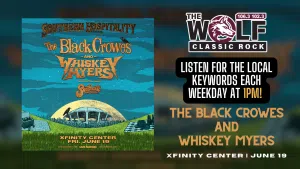 The Wolf has your chance to win tickets to The Black Crowes & Whiskey Myers "Southern Hospitality Tour" at Xfinity Center on Friday, June 19th! Listen to Heather Gersten from Mon, 2/9 thru Fri, 2/13 in the 1pm hour for the local text keyword to TEXT IN to 401-272-5483 for your chance to WIN tickets!