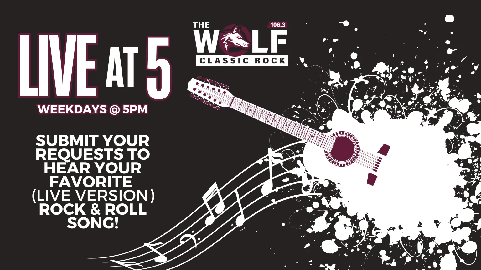 Every weekday at 5pm, tune in to Will Gilbert as he plays “Live in Concert” versions of your favorite rock & roll songs! Submit your song requests below! It’s “Live at 5” on The Wolf!